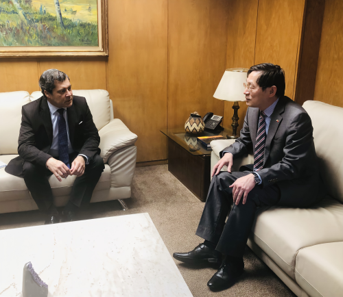 2023年11月7日,驻乌拉圭大使黄亚中会见乌外交部政治总司长贝穆德斯。