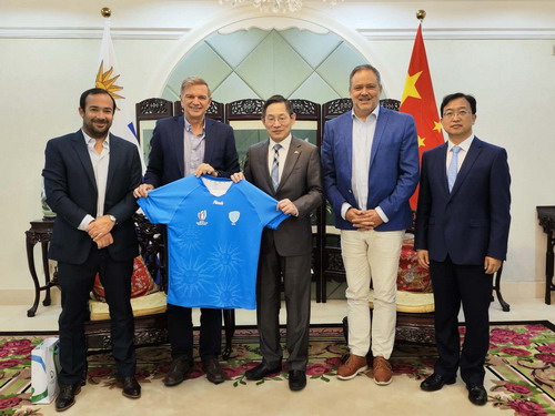 黄大使表示,乌拉圭是体育大国,民众热爱和参与各类体育活动。近年来中乌体育交流与合作不断深入,多批乌运动员前往中国接受训练并在包括奥运会在内的各级赛事上取得佳绩、获得奖牌。中国政府愿意继续加强两国体育领域合作,将体育交流打造成中乌友谊的新纽带。