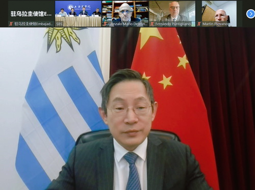 洛埃德尔大使在致辞中表示,乌是率先支持“一带一路”倡议的南美国家之一,也是首个同中方签署共建“一带一路”谅解备忘录的南共市国家。乌方愿同中方加强在投资贸易、教育科技等领域合作,不断为中乌全面战略伙伴关系注入新的活力