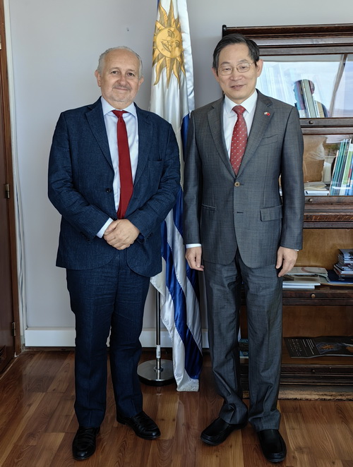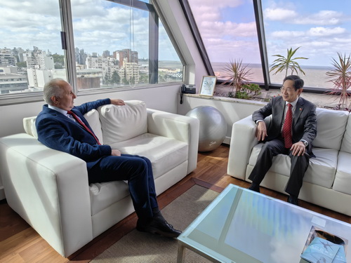 2024年4月10日,驻乌拉圭大使黄亚中拜会乌教育文化部长达西尔维拉,双方就中乌文教、体育、科技等领域交流合作交换意见。