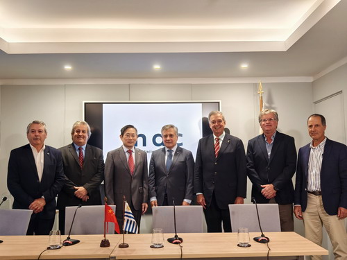 2024年4月16日,驻乌拉圭大使黄亚中出席乌方赠送种牛遴选仪式。乌外长帕加尼尼、牧农渔业部长马托斯、国家肉类研究所主席费尔贝尔等出席仪式。