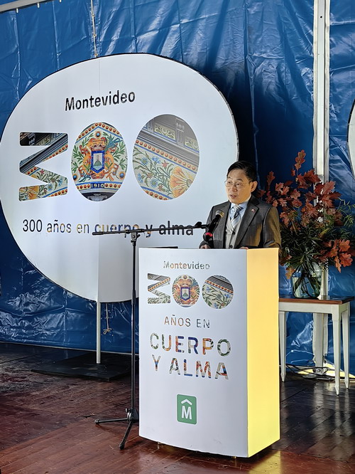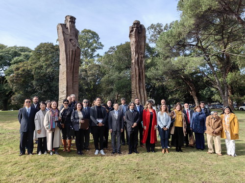 2024年5月29日,由中国美术馆馆长吴为山创作的大型雕塑作品《问道》在乌拉圭首都蒙得维的亚市中心巴特列公园揭幕。驻乌拉圭大使黄亚中、蒙市市长苏尼诺、正在乌访问的中国美术馆代表团、乌外交部、广泛阵线、乌共产党代表及多个博物馆负责人、艺术界重要人士等百余人出席仪式。