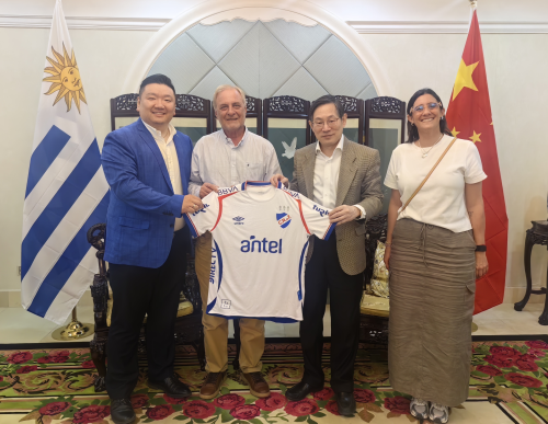 2025年12月22日,驻乌拉圭大使黄亚中会见乌民族足球俱乐部主席拜罗。