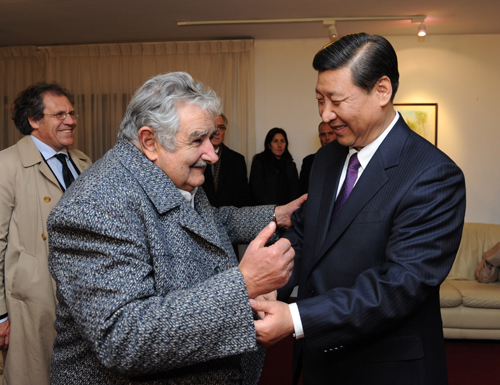 穆希卡祝贺习近平访问取得圆满成功。他说,我曾经在上世纪60年代访华,对中国一直怀有深厚的感情。您此次来访对乌中关系是一次重要推动,成果十分丰硕,受到乌拉圭各界广泛欢迎。乌拉圭是一个小国,与中国相距遥远,但我们的感情是相通的。乌方高度重视发展对华关系,希望双方以您这次访问为契机,共同推动乌中关系向更高水平发展。