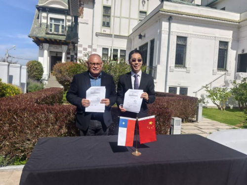 2025年9月16日,驻智利大使牛清报与瓦尔帕莱索大区主席穆达卡共同签署瓦尔帕莱索大区加入“丝绸之路旅游城市联盟”协议。瓦大区政府、旅游业界、高校代表数十人见证。