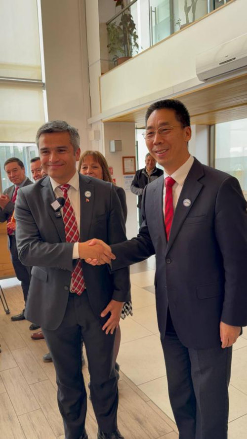 2025年12月4日、5日,驻智利大使牛清报访问智利艾森大区,分别会见大区主席桑塔纳、大区总统代表迪亚斯和大区众议员加利斯托,就经贸、能源、渔业合作、绿色发展和友好省市合作交换意见。