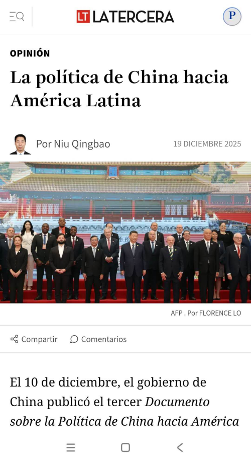 2025年12月19日,驻智利大使牛清报在智利主流媒体《三点钟报》撰文,介绍第三份《中国对拉美和加勒比政策文件》,全文如下: