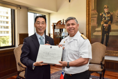 2025年12月23日,驻智利大使牛清报会见智利海军总司令卡布雷拉海军上将,就中智两国海军交流合作、加强海上渔业安全保障等领域交换意见。