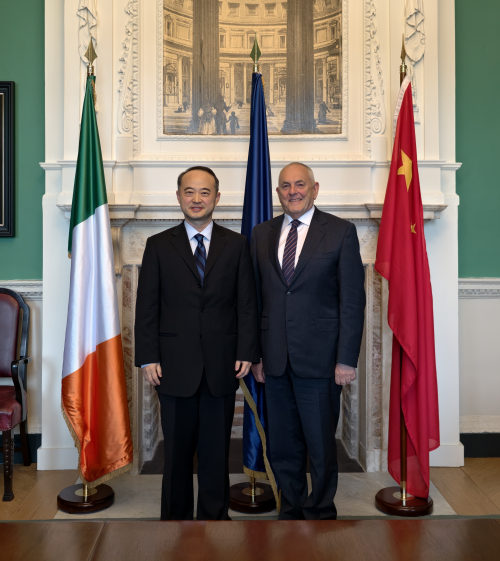 2025年9月24日,驻爱尔兰大使赵希源前往伦斯特宫拜会爱尔兰议会副众议长约翰·麦吉尼斯。
