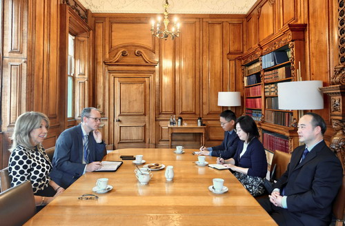 赵大使祝贺奥履新,感谢礼宾司长期以来为两国高层交往和驻爱使馆开展工作提供的宝贵支持,期待与礼宾司保持并不断加强良好合作关系。