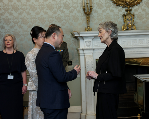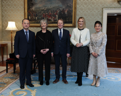 2026年1月21日,爱尔兰总统凯瑟琳·康诺利在总统府为驻爱使节举行新年招待会,驻爱尔兰大使赵希源及大使夫人李奕应邀参加,爱尔兰外交贸易部长麦肯蒂等出席。