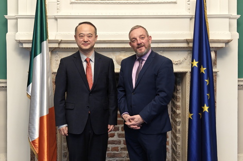 2026年3月5日,驻爱尔兰大使赵希源在爱尔兰议会拜会主管社区发展、慈善、爱尔兰语、小岛屿和乡村交通事务的国务部长布蒂默,就中爱关系友好交流。