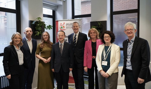 2026年3月26日,驻爱尔兰大使赵希源出席爱中商会中国市场动态发布会并致辞,爱外交贸易部、投资发展局、贸易科技局及多家中爱企业参会,爱驻华大使欧博仁视频致辞。