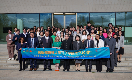2026年4月19日,驻爱尔兰大使赵希源夫妇出席第二十五届“汉语桥”世界大学生中文比赛爱尔兰赛区比赛,来自爱各高校的16位选手参赛,都柏林大学副校长埃亨及参赛选手亲友近百人观看比赛。