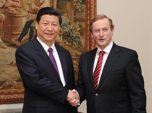 习近平说,中爱两国虽然幅员大小、社会制度和文化传统不同,但两国人民彼此一直怀有友好感情。双方坚持平等相待,相互信任,树立了国与国友好共处的典范。肯尼总理先生领导的联合政府去年执政以来,全面加强对华合作,推动两国关系持续稳定发展。在国际金融危机背景下,双边贸易仍保持增长势头。双方在教育、科技、文化、卫生等各领域合作不断取得新进展,中爱友好的民意基础不断巩固。两国在重大国际问题上保持良好沟通和协调。爱方多年来坚定奉行一个中国政策,我们对此表示赞赏。