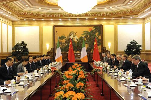 2012年3月27日,国务院总理温家宝在人民大会堂同爱尔兰总理肯尼举行会谈。双方宣布建立中爱互惠战略伙伴关系。