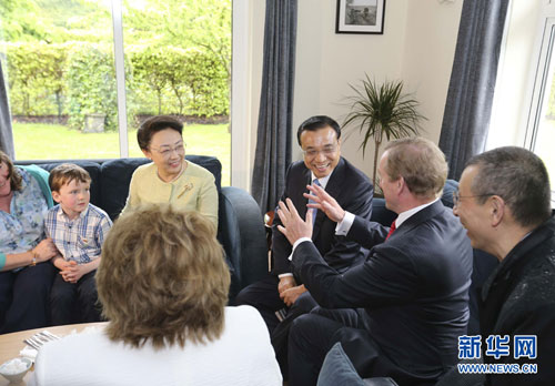 当地时间5月17日下午,正在爱尔兰过境访问的国务院总理李克强和夫人程虹在爱尔兰总理肯尼夫妇陪同下,参观了位于香农的加维农场。