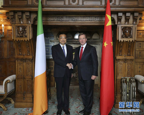 肯尼欢迎李克强总理过境访问爱尔兰。他表示,爱中关系长期友好,特别是两国建立互惠战略伙伴关系后,双边关系发展顺利。爱尔兰高度关注中国经济发展前景,赞赏中国政府的经济改革举措,重视发展对华关系,愿进一步保持高层交往,加强贸易、农业、金融、航空租赁、清洁能源、生物制药、教育、旅游等领域合作,扩大人员往来。爱方愿帮助中国企业进入欧洲市场。