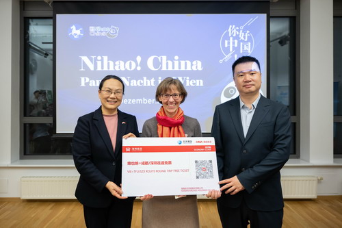 2025年12月4日,驻奥地利大使亓玫出席“你好!中国 熊猫之夜・维也纳站”旅游推介会。此次推介会由驻苏黎世旅游办事处主办,维也纳商会旅游事务负责人哈斯林格-施皮策、美泉宫动物园园长赫林-哈根贝克、奥旅行社代表等参加。