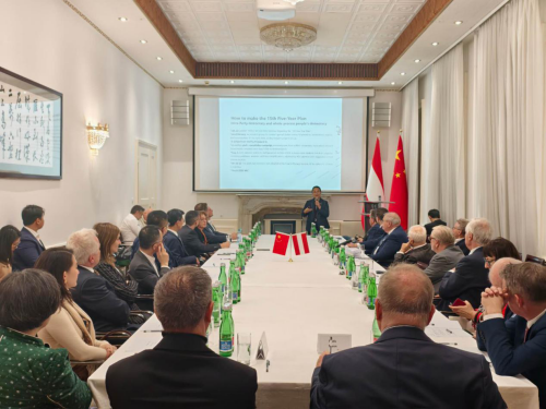 亓玫大使作专题讲座,系统介绍四中全会精神和“十五五”规划建议的出台背景、指导方针、主要目标、战略任务和重大举措。亓玫大使表示,明年是中国“十五五”开局之年,也是中奥建交55周年。中国继续推进高质量发展、扩大高水平对外开放,将为奥方和欧盟企业深耕中国市场带来新机遇。中奥在先进制造、绿色发展、数字经济、人工智能、冰雪经济、康养旅游等领域合作潜力巨大,中奥友好战略伙伴关系前景广阔。