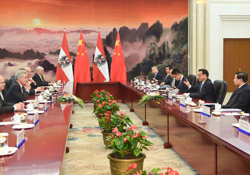 李克强表示,总统先生长期致力于发展中奥关系,为促进两国交流与合作作出了重要贡献。中奥虽然国情和发展水平不同,但彼此没有根本利害冲突,人民之间传统友谊深厚。中国政府重视发展同奥地利的关系,愿在相互尊重、平等互利基础上,推动两国关系在新形势下取得新进展。