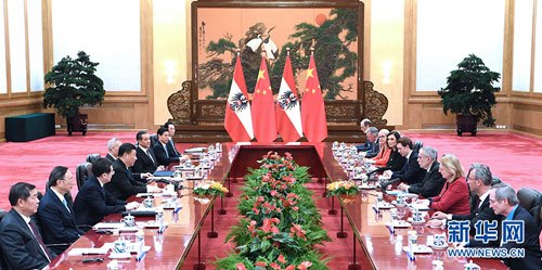 习近平强调,中奥经济互补性强、利益契合点多,合作领域广泛,空间和潜力很大。双方要以建立友好战略伙伴关系为契机,加强政治引领和顶层设计,保持高层交往势头,开展各领域更加广泛的交流对话,提升两国在司法、安全执法、反腐败追逃追赃等领域合作水平,就多边事务加强沟通,共同维护世界和平与稳定。要拓展两国务实合作的新维度,拓展贸易新渠道。中方赞赏奥方对中国投资展现的开放态度,将继续扩大市场开放,欢迎更多奥地利企业来华投资。要共同推进亚欧互联互通,共享巨大市场机遇。中方欢迎奥方深度参与中国-中东欧国家合作,愿同奥方加强各自发展战略对接。要继续加强双方在大熊猫合作研究、旅游等人文领域合作,让两国友谊更加深入人心。