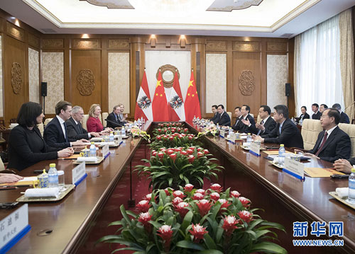 李克强指出,中奥合作有基础、有优势、更有后劲。中方愿同奥方不断扩大双边贸易与双向投资,在高端制造、科技创新、节能环保等领域打造新增长点,拓展在“一带一路”和“16+1合作”框架下的合作,实现互利共赢。中欧同为经济全球化的建设者和受益者,中方愿同包括奥方在内的欧洲国家一道,共同促进贸易和投资自由化便利化,共同反对各种形式的保护主义,维护和加强多边贸易体制,不断增进双方人民福祉。