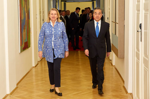 王毅表示,今年4月,范德贝伦总统偕库尔茨总理成功访华,双方确定建立友好战略伙伴关系。中方愿同奥方一道,按照这一新的定位,落实好两国元首达成的重要共识,保持各层级密切交往,以中国新一轮改革开放和奥方参加中国国际进口博览会“国家展”活动为契机,推动中奥务实合作扩容升级。中方赞赏奥方积极参与“一带一路”建设,愿与奥方共享亚欧互联互通带来的巨大市场机遇。