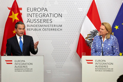 当地时间2018年7月5日,国务委员兼外交部长王毅在维也纳同奥地利外长克奈斯尔共同会见记者时应询表示,奉行贸易保护主义是短视行为,既损人又不利己。任何单边行径都违反世贸组织规则,损害多边贸易体制,也将给世界经济的复苏势头和发展前景带来阴影。