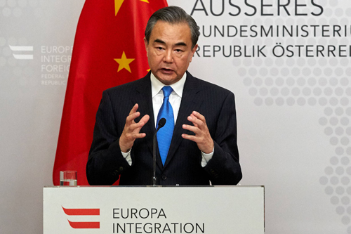 当地时间2018年7月5日,国务委员兼外交部长王毅在维也纳同奥地利外长克奈斯尔共同会见记者时应询表示,即将举行的伊朗核问题外长会十分及时、十分必要,相信会议一定能够对外发出团结一致维护和执行全面协议的明确信号。