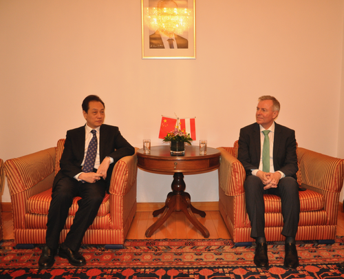 2018年10月25日,外交部副部长王超应邀出席奥地利驻华使馆举行的国庆招待会,并同奥地利驻华大使石迪福就中奥关系等议题交换意见。