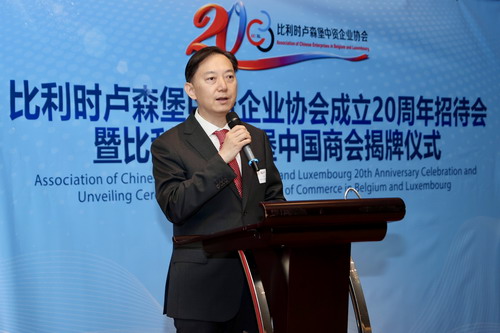 2024年5月21日,驻比利时使馆临时代办吴刚出席比利时卢森堡中资企业协会成立20周年招待会并致辞。