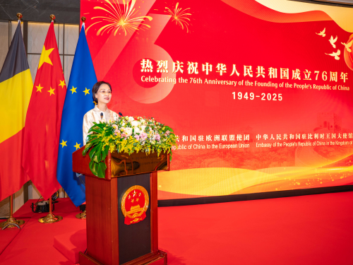2025年9月24日,驻比利时使馆、驻欧盟使团联合举办庆祝中华人民共和国成立76周年招待会。驻比利时使馆临时代办李艳、驻欧盟使团团长蔡润大使,比政府和欧盟机构高级官员及比、欧各界人士、中资机构、华侨华人代表等800余人出席。