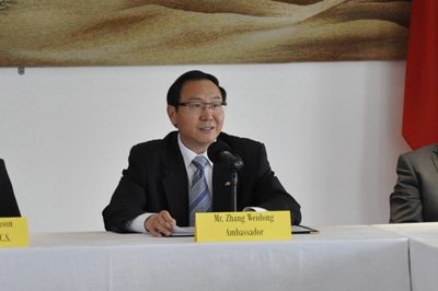 张大使说,70年前,中冰两国分别在各自战场为世界反法西斯战争作出了贡献。中冰建交以来,两国友好关系取得了长足发展。两国人民都切实体会到和平环境带来的好处,充分享受到繁荣发展带来的福利,都对当今来之不易的和平倍加珍惜。中华民族历来是爱好和平的民族。中国将坚定不移走和平发展道路,与包括冰岛在内的世界热爱和平的国家一起,为建设持久和平、共同繁荣的和谐世界而努力。