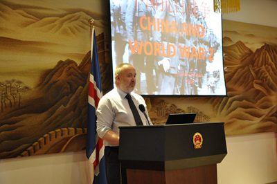 2015年8月28日,中国驻冰岛大使馆与冰中文协、冰中贸促会和冰岛华人华侨协会联合举办座谈会,纪念中国人民抗日战争暨世界反法西斯战争胜利70周年,中国驻冰岛大使张卫东、冰外交部礼宾司司长帕尔松、冰中文协主席贺加松、冰中贸促会主席哈达松、冰岛华侨华人和留学生代表等50余人出席。