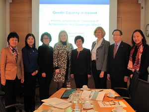 代表团一行还分别会见冰社会事务与住房部长哈尔达多蒂尔、冰外交部常秘约翰内松、冰外交部人权大使贡纳斯多蒂尔、联合国妇女署冰岛全国委员会主任埃里克斯多蒂尔、联合国大学性别平等培训中心项目官员赫瑶玛斯多蒂尔、冰儿童屋心理学家马格努斯多蒂尔等冰方有关人士,就妇女儿童权益保护及中冰双方合作等议题进行了交流。