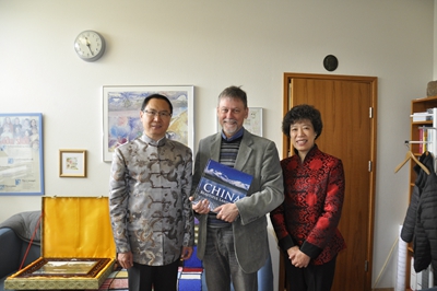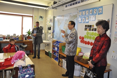 校长Asgeir Beinteinsson先生对张大使夫妇的到来表示热烈欢迎并简要介绍该校历史、生源师资、教学管理等情况,之后陪同张大使夫妇参观了教室和校园。