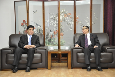 驻冰岛大使张卫东在使馆会见代表团一行,陪同出席了总统会见,并与冰总理约翰松一起见证了签署协议。