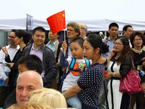 总领馆还专门邀请了正在德国巡演的北京现代舞团为现场观众献演。值得一提的是,舞蹈演出期间突降阵雨,艺术家们索性走下舞台,冒雨同观众近距离互动,热辣动感的舞姿让来宾大呼过瘾,热情更加高涨。