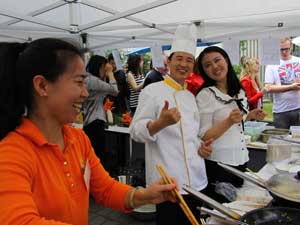 为丰富活动内涵,我馆各处室搭建了信息及餐饮展台,为现场观众准备了大量精美的中国宣介材料和特色中式小吃,并通过总领馆10周年纪录片及文字图表展、“丝路新颜”图片展、馆内巡游导览等别开生面的活动,为现场来宾们充分展示了双边关系发展、总领馆工作生活情况和丝绸之路沿线自然和人文景观。