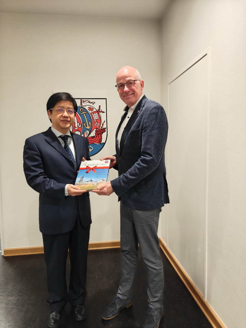 2025年12月10日,驻汉堡总领事林动到任拜会德国不来梅哈芬市议长冯·哈伦。双方就促进海洋经济、港口物流等领域合作进行友好交流。林总领事介绍了中国共产党二十届四中全会有关情况,欢迎不来梅哈芬市深化对华合作,共享发展机遇。冯·哈伦议长表示,愿深化对华友好合作,造福双方人民。