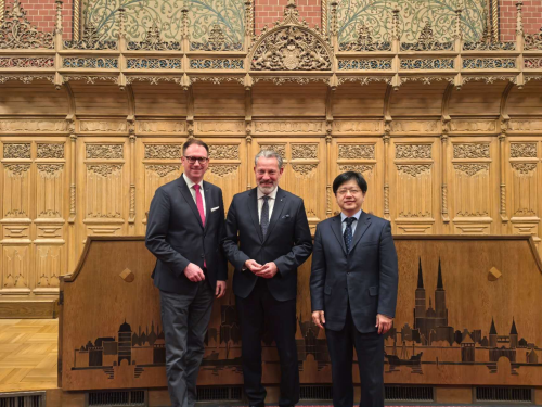 2026年1月13日,驻汉堡总领事林动到任拜会德国石荷州吕贝克市市长扬·林德瑙、议长亨宁·舒曼。林总领事介绍了中国共产党二十届四中全会精神和“十五五”规划建议内容,表示双方可发挥各自长处,加强在数字化、生物医药、海洋经济等各领域务实合作,实现互利共赢。林德瑙市长、舒曼议长表示愿积极推进对华务实合作、深化人文交流。