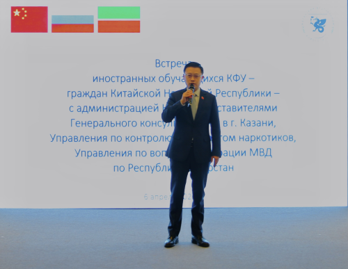 2023年4月6日,驻喀山总领馆、喀山联邦大学、俄罗斯鞑靼斯坦内务部共同举办“平安留学”宣讲活动。驻喀山总领事向波和教育官员,喀山联邦大学副校长阿利舍夫及主管工作人员,鞑靼斯坦共和国内务部、移民局主管官员,以及近400名中国留学生参加。