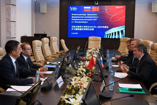 2023年4月11日,驻叶卡捷琳堡总领事崔少纯会见乌拉尔联邦大学校长果克沙洛夫。