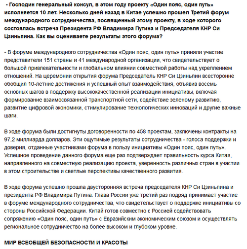 2023年10月24日,驻喀山总领事向波接受俄罗斯《喀山晚报》采访,重点宣介第三届“一带一路”国际合作高峰论坛成果、推动构建人类命运共同体理念。