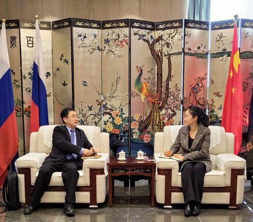 2023年11月15日,驻符拉迪沃斯托克总领事朴扬帆会见中国社科院欧亚所李振利副所长。