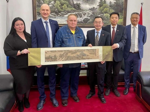 2025年10月30日,驻伊尔库茨克代总领事孙传江会见东西伯利亚经济法律学院校长特鲁欣,该院副校长库兹明、布卡参加。