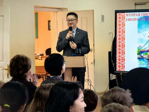 2026年1月9日,驻哈巴罗夫斯克总领事姜笑洋出席哈巴罗夫斯克市东方语言第四中学汉语普及项目开营式。哈巴市教育局局长马特韦延科娃、对外友协会长罗伊特曼、哈巴四中校长卡布津科以及当地多所中小学、幼儿园近百名师生参加。