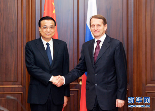 国务院总理李克强当地时间13日上午在莫斯科会见俄罗斯国家杜马主席纳雷什金。