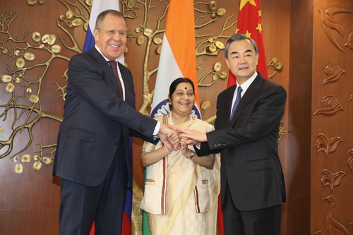 俄罗斯外长拉夫罗夫和印度外长斯瓦拉吉表示,在当前复杂多变的国际形势下,中俄印三国应借助联合国、二十国集团、金砖合作、上海合作组织等多边机制,进一步加强在地区冲突、经济发展、反恐、气候变化、落实2030年可持续发展议程等热点问题和全球事务上的协调与合作,推动建立更加公平、民主的国际秩序。中俄印合作开放透明,不针对第三方,有助于维护新兴市场国家和发展中国家的共同利益,有助于促进世界的和平与发展。